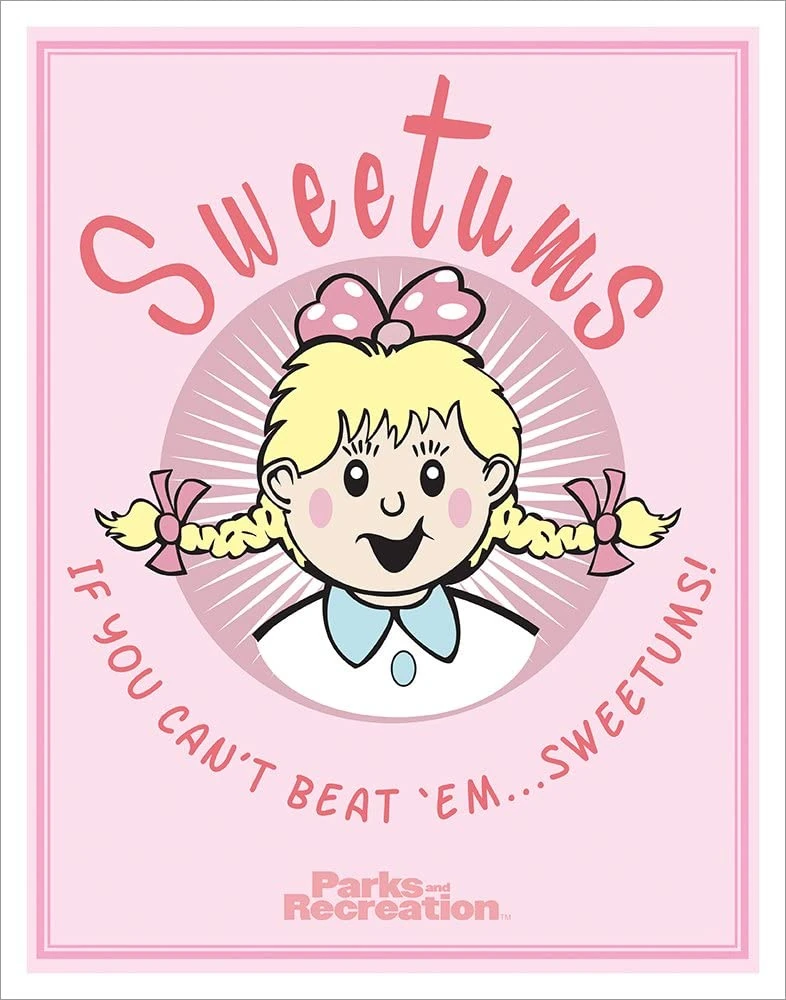 Sweetums is Pawnee's leading sweet treat manufacturer and has been for over 80 years. Its slogan is: "If you can't beat 'em, Sweetums." Leslie Knope has said "When you think Pawnee, you think Sweetums." The company first appeared on the episode "Sweetums" during Season 2 when the company took over the parks' concession stands in Pawnee. Leslie and Ann Perkins are not fans of Sweetums' newest product, NutriYum Bars, because they're an unhealthy product being marketed as a healthy product. The Sweetums Factory is located at 1 Sweetums Way.